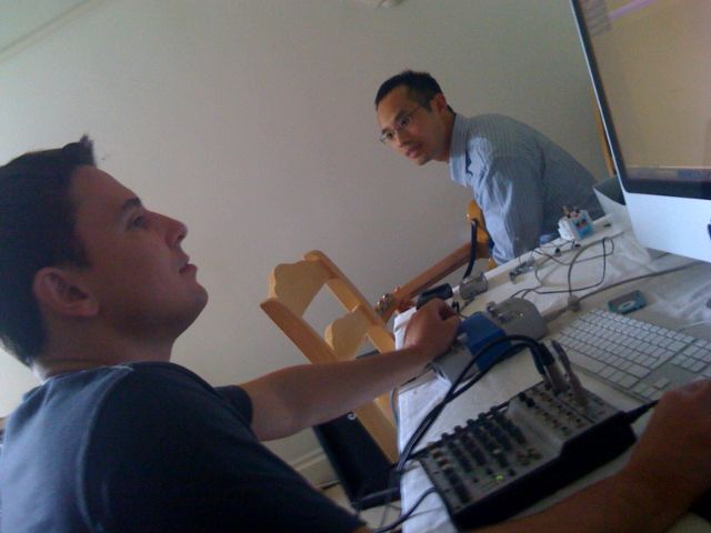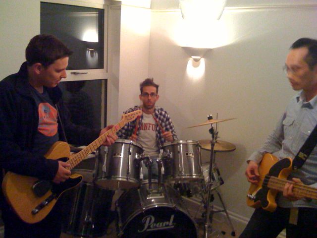 Band practice Matt, Chalkers and I hooked up to play some tunes a couple of weekends ago. We were at least as good as the “on the road” years in Zippy’s … We may have, er, tweaked the sound a little:… but at least we had some better gear than uni days: Posted on August 27, 2008August 27, 2008 by cwhyley 0